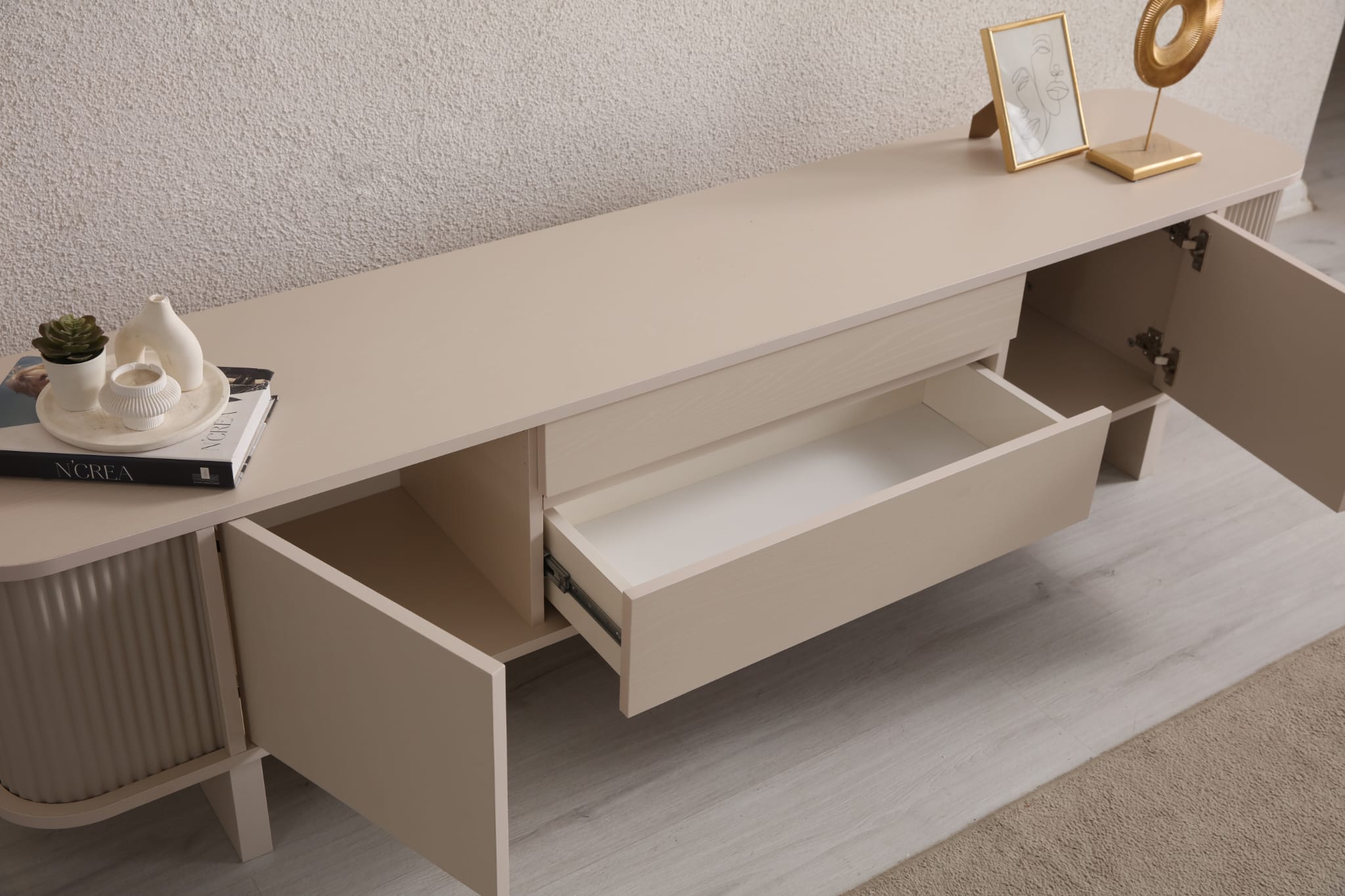 Modern çizgilerle tasarlanmış Elisa Yemek Odası Takımı, yaşam alanlarınıza hem estetik hem de işlevsellik katıyor. Takım içerisinde yer alan TV Ünitesi, açılır yemek masası, şık tasarımlı konsol ve 4 adet konforlu sandalye ile hem yemek alanınız hem de salonunuz için bütüncül bir dekorasyon sunar.